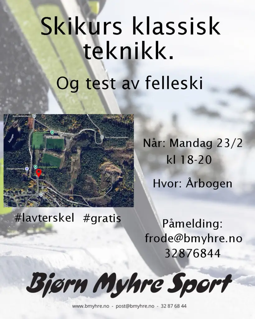 Mandag 23/2 (kl 18-20) arrangerer vi skikurs klassisk teknikk. I tillegg har vi med masse felleski som kan testes.